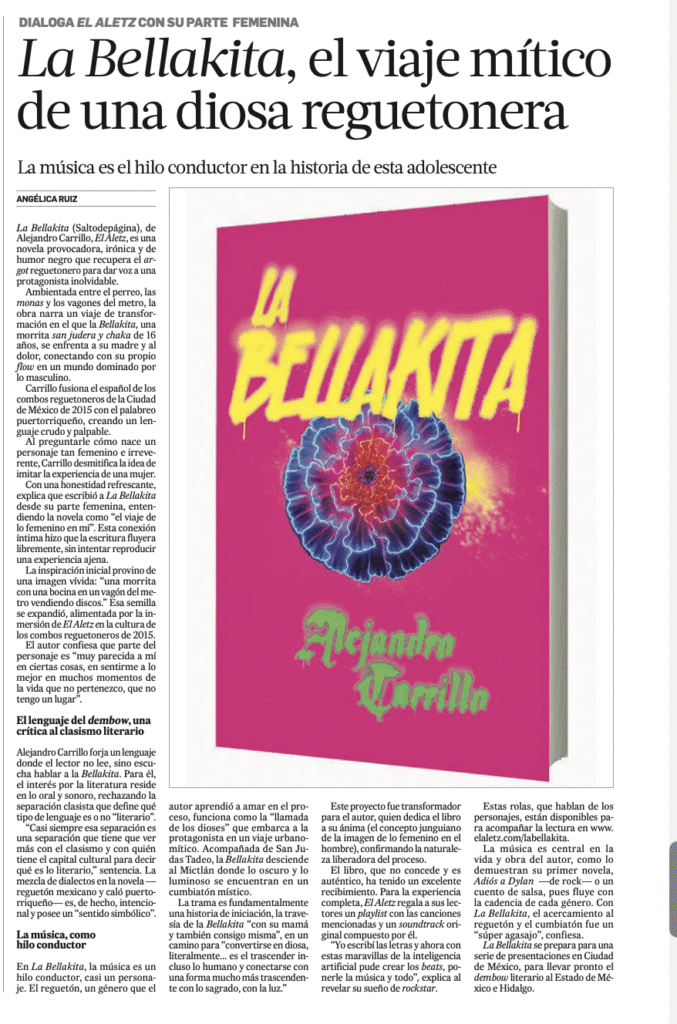 La Bellakita (Saltodepágina), de Alejandro Carrillo, El Aletz, es una novela provocadora, irónica y de humor negro que recupera el argot reguetonero para dar voz a una protagonista inolvidable.